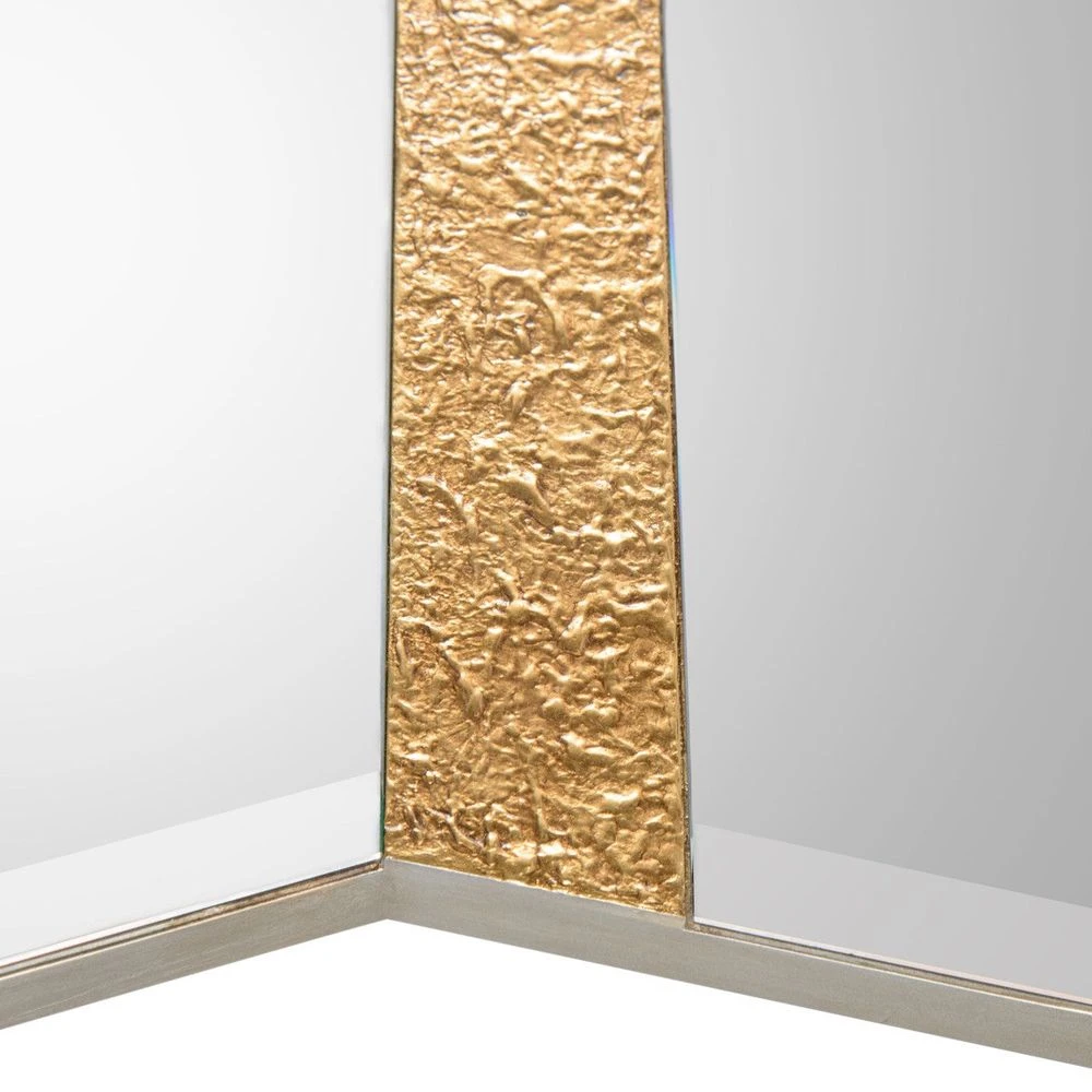 Description: A frameless mirror divided with a textured stip finished inExotic Gold.