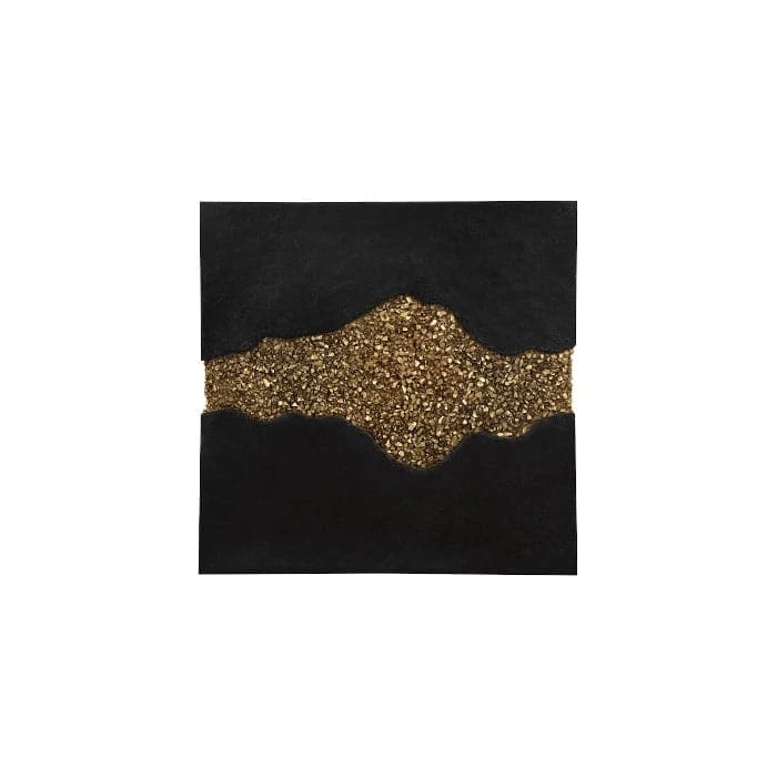 The Geode Texture Wall Decor is a contradiction in several ways. Made of composite, the large statement piece has a textural gold river running along a smooth black background. Not only is there an interplay of rough and smooth juxtapositions on this black wall sculpture, but the brightness of the gold and depth of the black also prove that opposites attract.