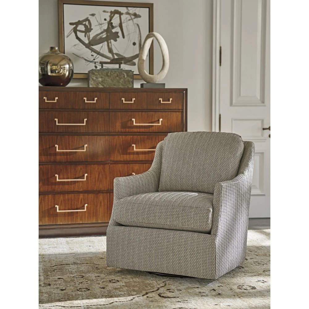 Marketing Copy: Designs in Rendezvous are best described as modern classics, or the place where contemporary meets traditional. Crafted from walnut veneers with elegant cathedral grain patterns, pieces are finished in a rich sable brown finish. Hardware is finished in rose gold and metal accents feature gold-burnished silver leaf. Select items showcase the natural beauty of Bulgari Beige marble tops. The result is a classic take on modern design, and a fresh view of luxury living.