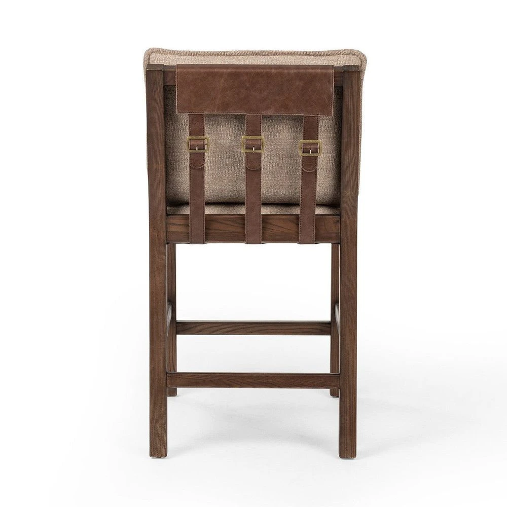 Description: Almond-finished parawood frames cushioned seating upholstered in high-performance fabric. Perfectly sized for the counter.