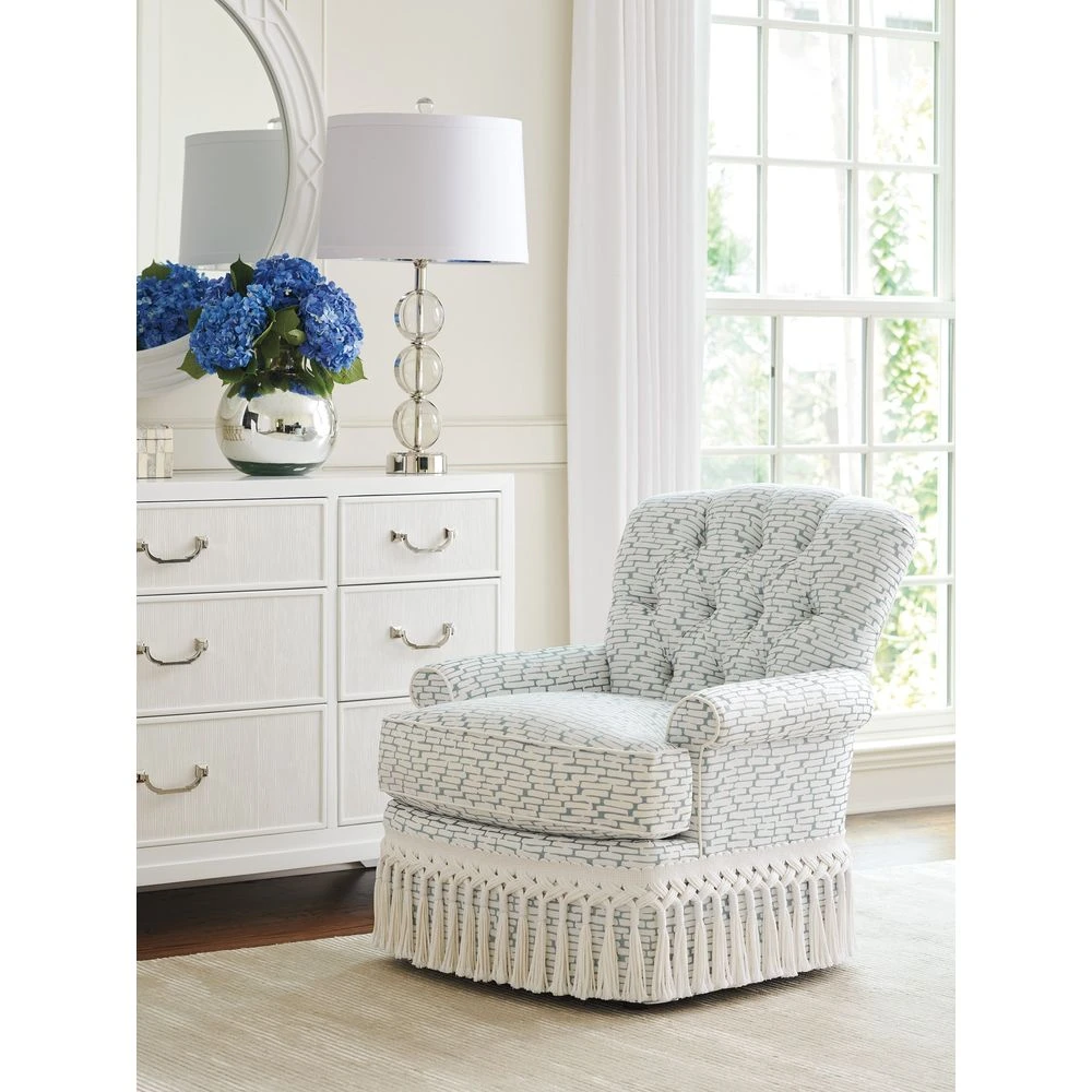 Marketing Copy: Modern traditional design emphasizes clean lines, light finishes and the dramatic use of color to infuse energy into the room. The look replaces formality with a more comfortable and approachable aesthetic. The Avondale collection takes classic design elements and transforms them using a crisp white finish, bright color palettes and bold fabric patterns for an inspiring take on luxury living today.
