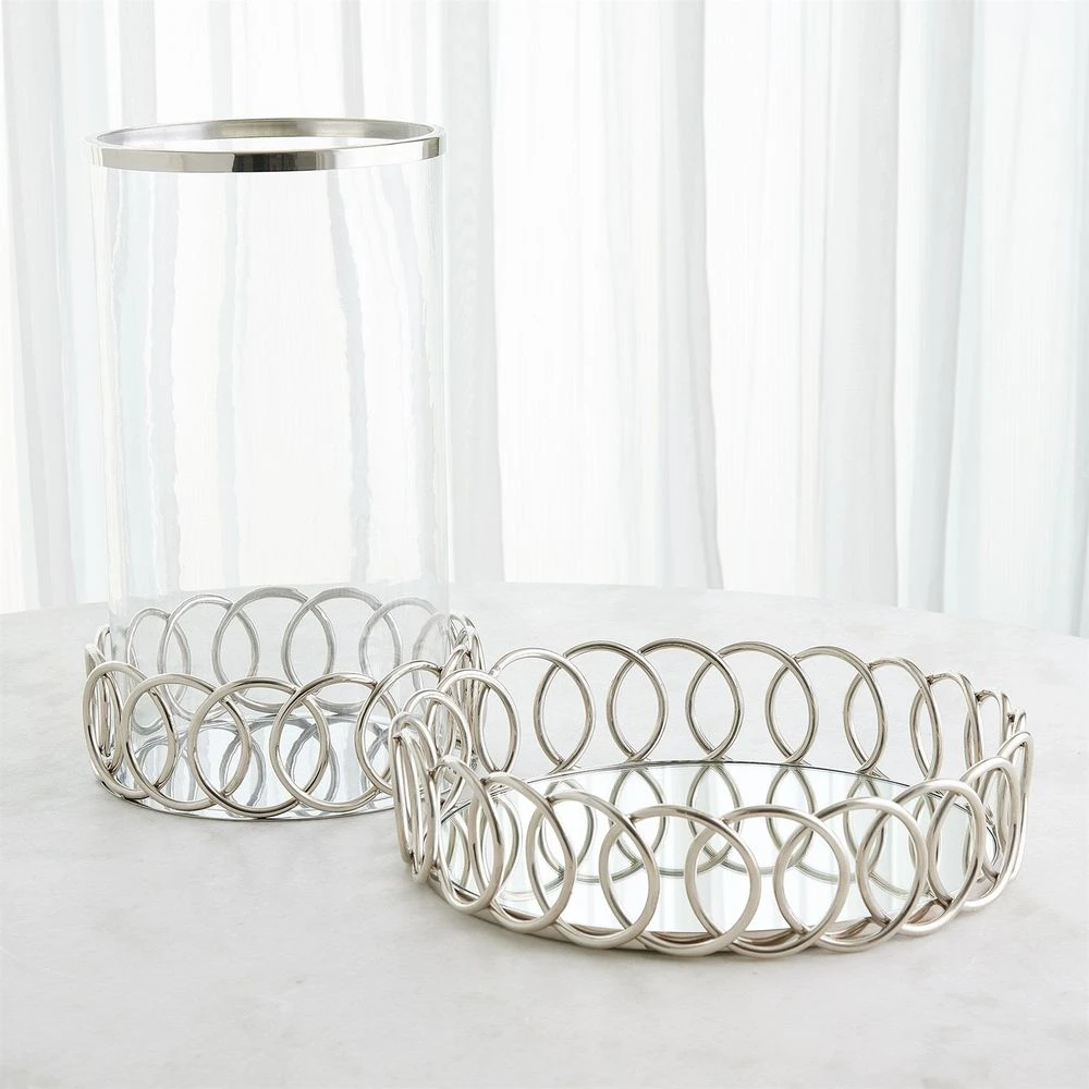 Description: The Loops Hurricane & Tray are a stunning blend of craftsmanship and style, handcrafted from stainless steel with a sleek nickel finish. These elegant pieces are perfect for adding modern sophistication to any space.