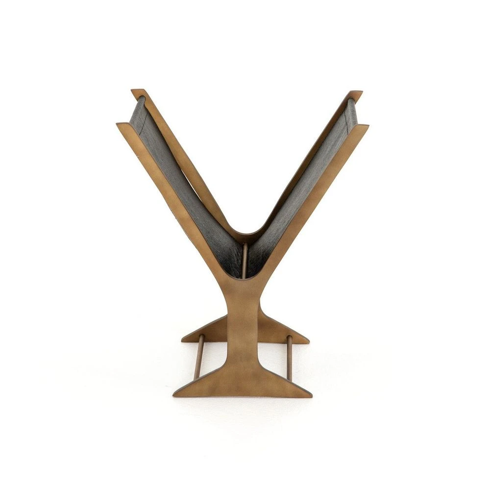 - Description: Simple and sophisticated. Rustic brass-finished aluminum frames perforated black faux leather, for handy storage of papers and periodicals.
