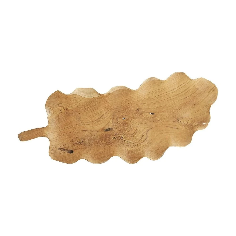 Artisans skillfully carve natural teak root by hand to create the wildly organic centerpiece inspired by palm leaves known as the Dugan. Large in scale this sculptural structure commands the tabletop on which it resides. Food safe. Size and shape may vary.