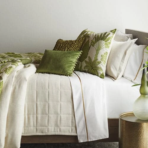 Named for Marrakech’s famous gardens, this botanical embroidery features arboreal motifs in a range of greens.