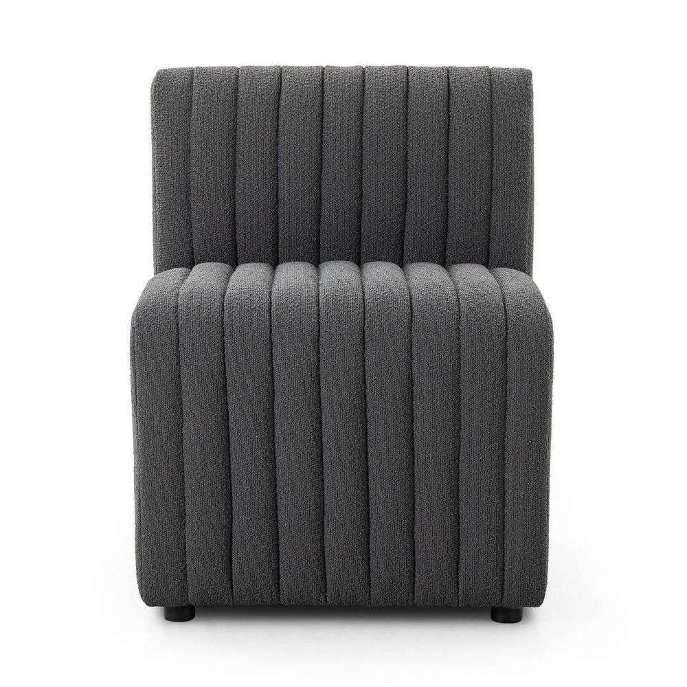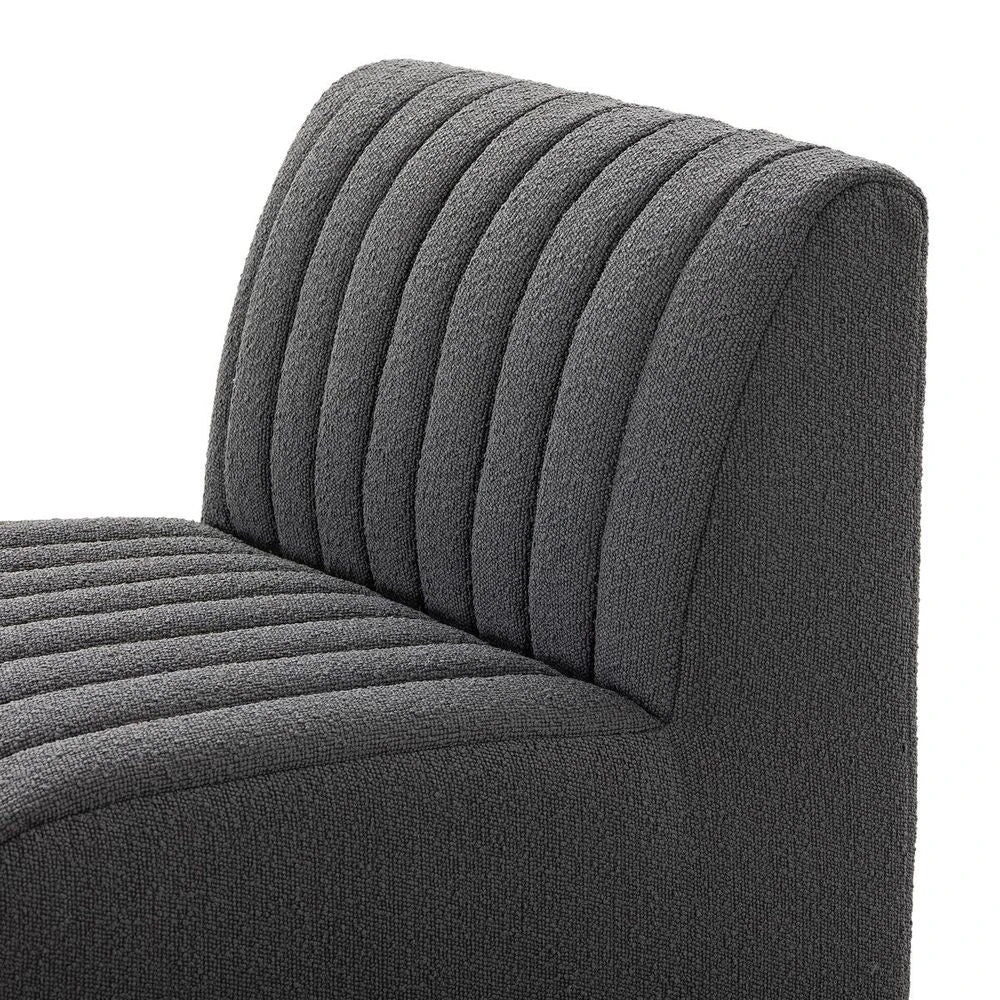 High-performance fabric in a versatile oatmeal hue features dramatic channeling, for trend-forward texture and sumptuous sit.