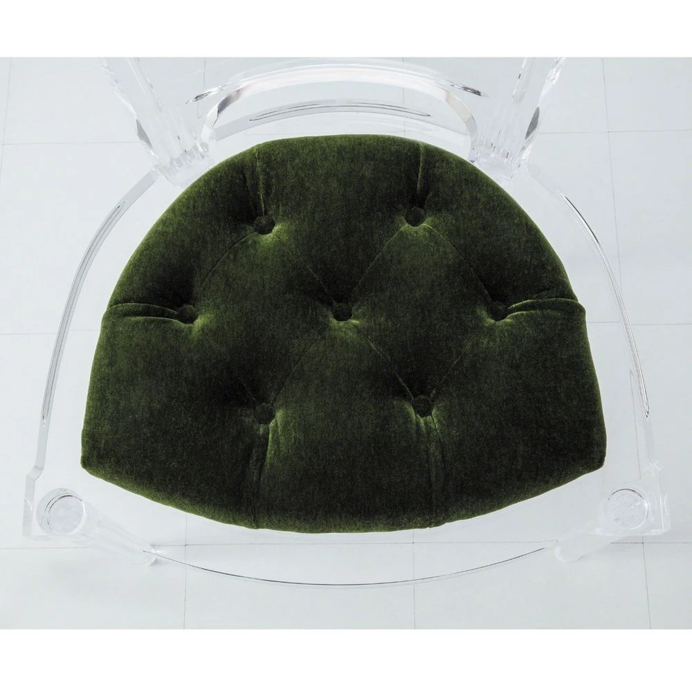 Italian molded clear acrylic was inspired by our best selling Marilyn chairs. This version features a rich juxtaposition of a tufted mohair cushion with traditional silhouette in clear acrylic. Available in 6 saturated colors. Dye lots may vary slightly.