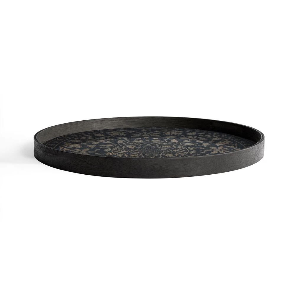 A subdued color palette meets captivating motifs inspired by nature and travel. This Black Marrakesh wooden tray experiments with the balance between rich patterns offset with muted tones, revealing the beauty behind the deceivingly ordinary subjects from which inspiration is drawn. In doing so, this collection captures the essence of timelessness.