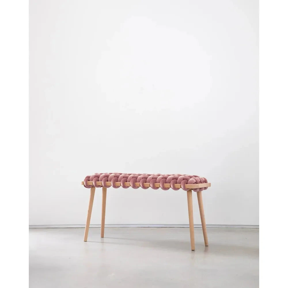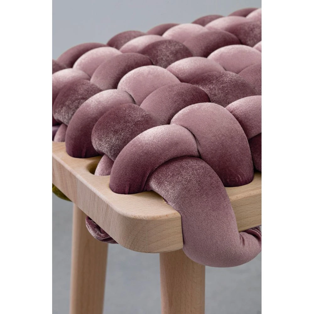 Description: The woven bench is a meticulously crafted piece that adds a playful yet sophisticated touch to any entryway or living area. Using a unique weaving technique, this handmade bench combines soft velvet fabric and durable Beechwood for both aesthetic and functional value that will endure for years to come.