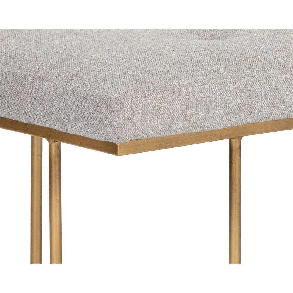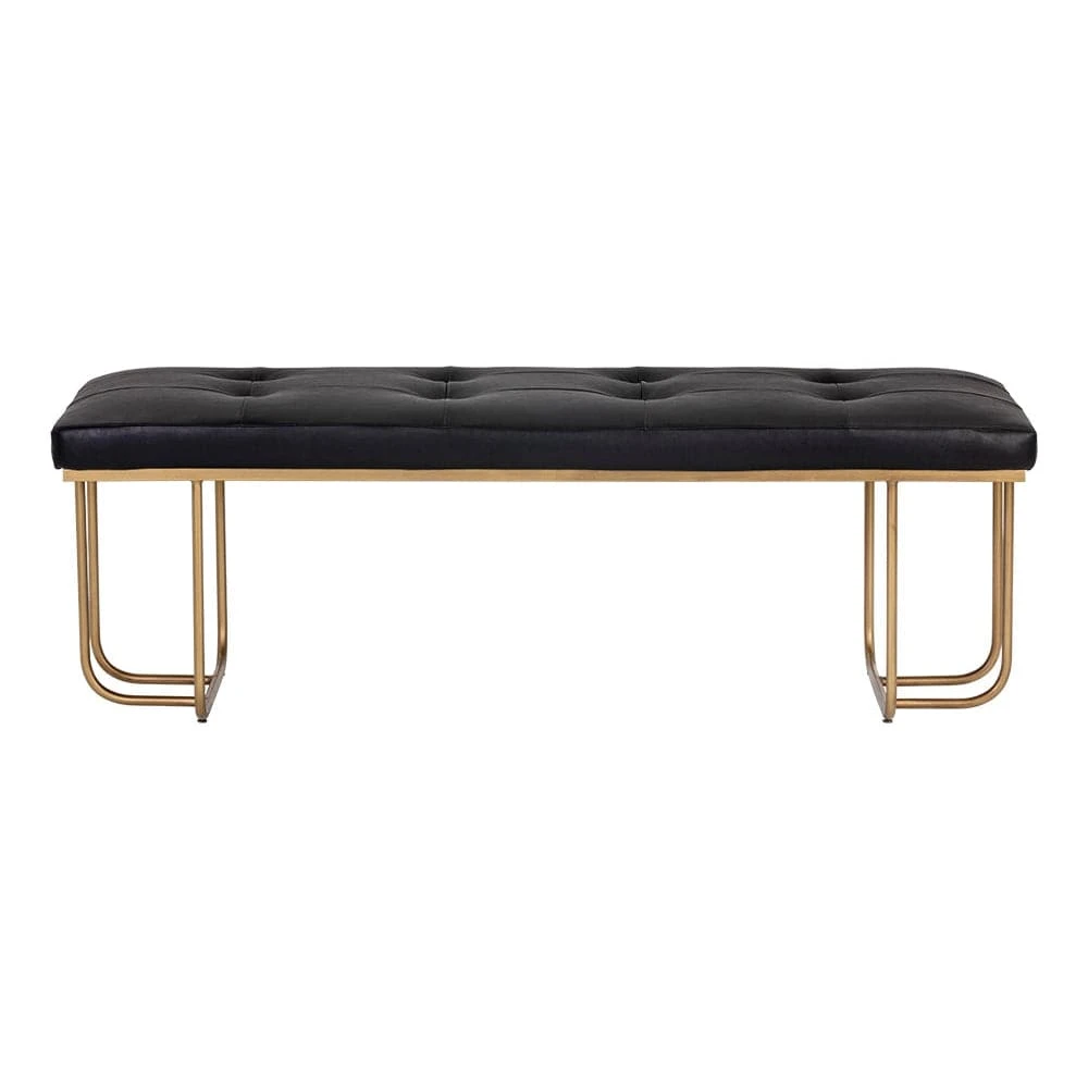 This stylish bench will provide additional seating to living and lounge spaces. Features a tufted seat bravo black faux leather with curved antique brass iron legs.