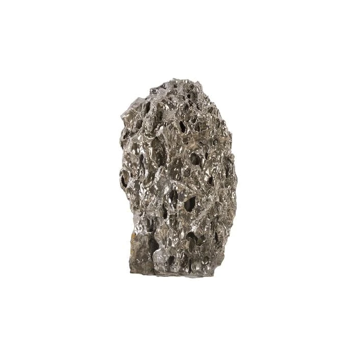 One of the smartest ways to bring nature indoors is to introduce aged pieces of stone to a space, as each will become textural sculptures in any vignette. Our Stalagmite Chrome Wall Art Set has tremendous character that we have enhanced by covering the surface with chrome. These wall sculptures are assorted so the pieces contained in each set will be varied, which makes the decorative objects unique.