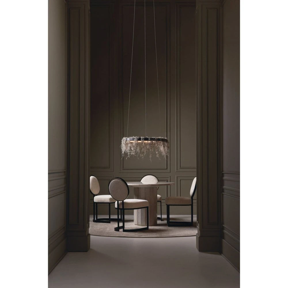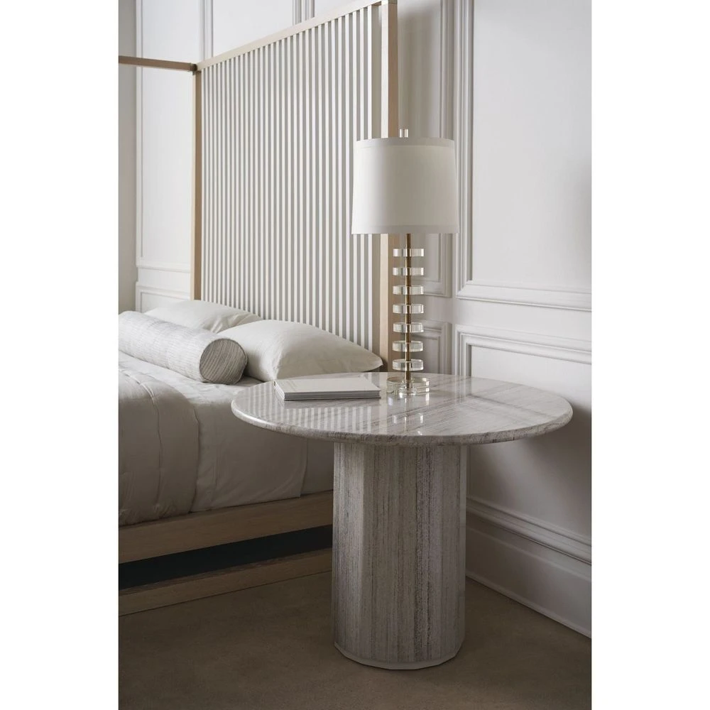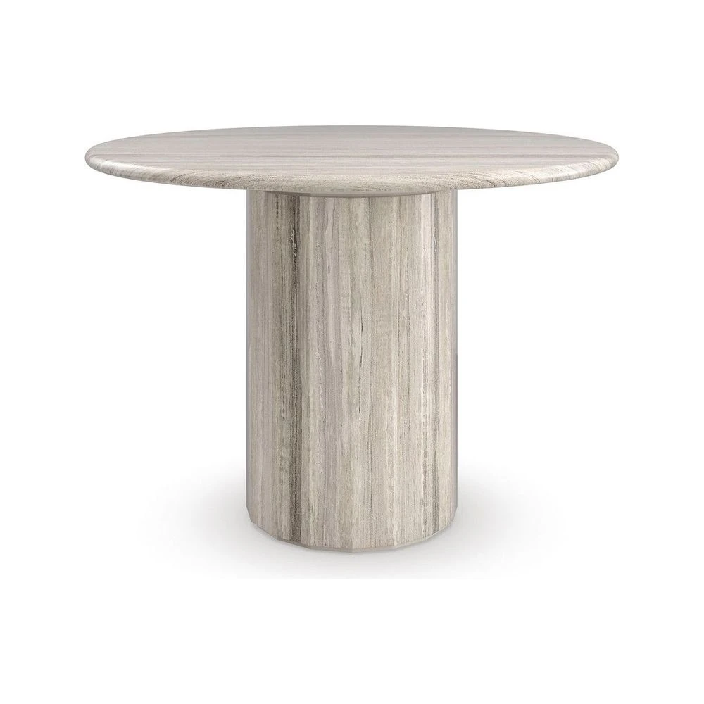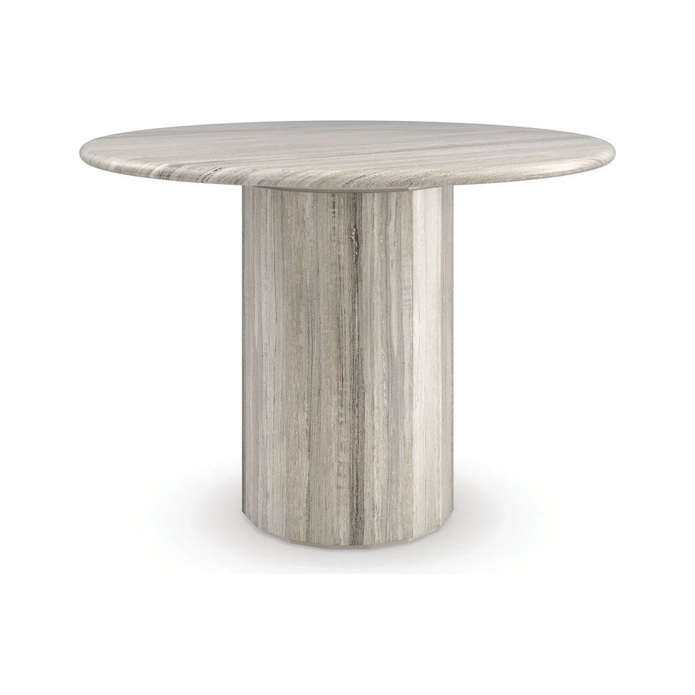 Aptly named for its small-scale, Mesita is a celebration of texture and material. A polished sandstone top introduces natural banding and an organic element, punctuated by its pedestal-style base, crafted from intricately pieced strips of stone to create a subtle bevel. Perfectly sized to make an entrance, or entertain in small dining spaces. Even more dramatic: style alongside a sofa or chair as a statement-making end table.