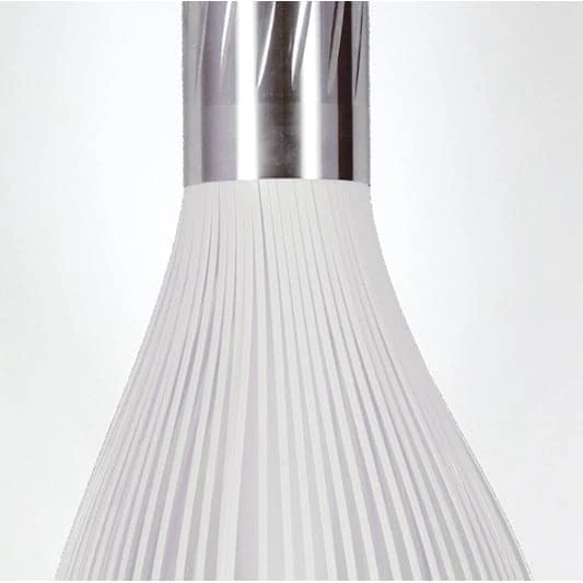 This attractive modern pendant lamp is a marvel of technology. The design uses a chemically etched aluminum body and a fiberglass diffuser. All of this is topped off with a unique feature that allows the light emission to be adjusted via a mechanical movement that opens the louvers, which alters the shape of the lamp and its shade. Softly diffused ambient light is provided by a standard 75 watt bulb and four LED bulbs. Available in black or white.