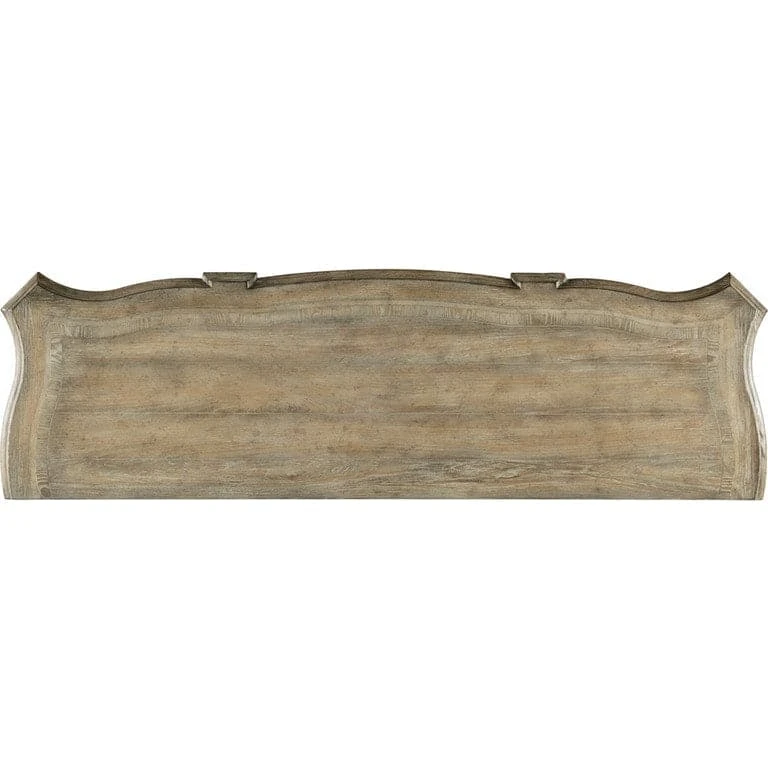 - Finish: Antique Slate: a mid-tone brown finish with a beautiful patina. Distressing includes sandblasting, drawknife, wormholes and stone. Knob and bail pull hardware in an antique silver finish.