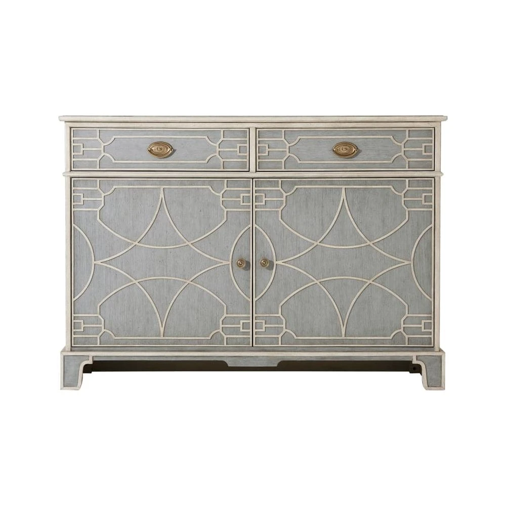 - Two Blind Fretwork Frieze Drawers with Brass Handles
