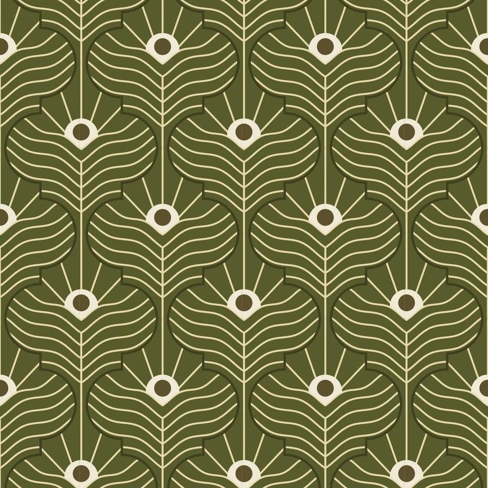 This ornate pattern is of a minimally designed eye-spotted peacock feather in a traditional Moroccan tile shape. Fill an entire room with bold patterning that looks back at you or revive your new favorite wall.