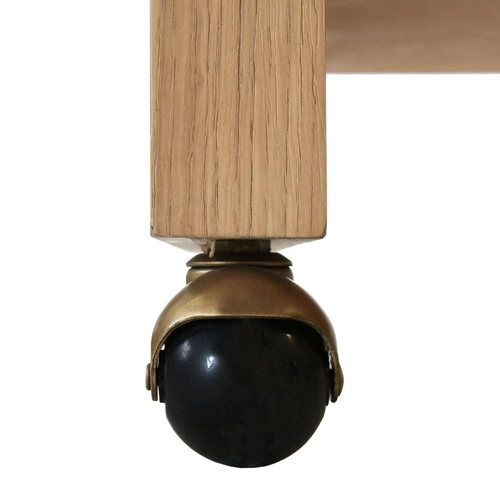 Description: WATERFALL EDGE BAR CART WITH ANTIQUE BRASS RAILS IN NATURAL OAK