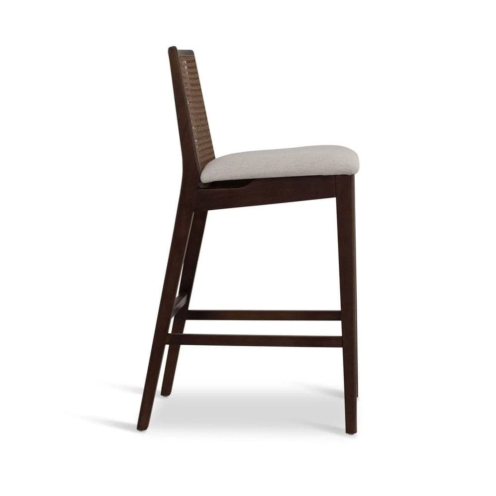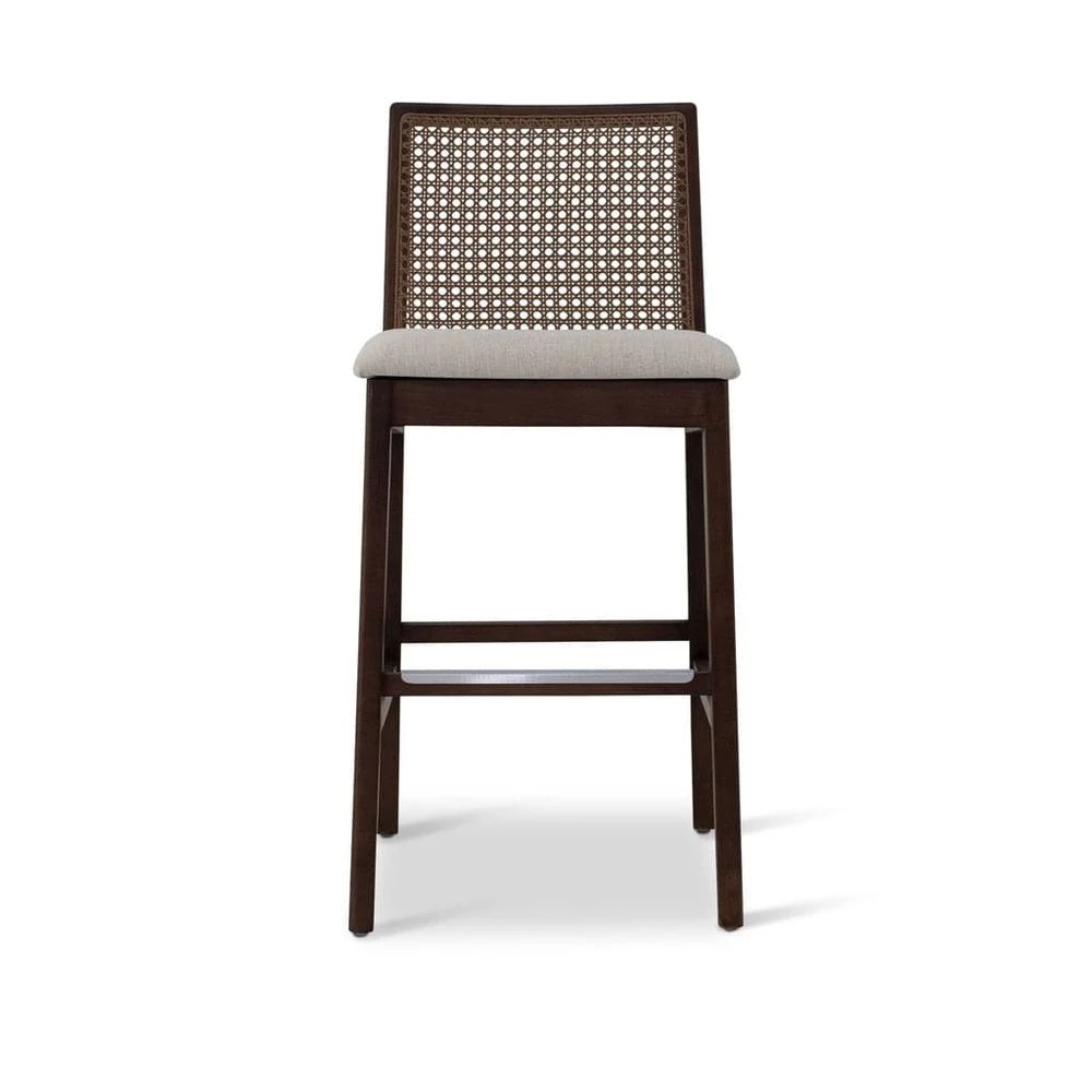 Skillfully crafted in Brazil, the Nardia Cane Counter Stool is a seamless fusion of transitional charm and contemporary design. Crafted with a solid Tauari wood frame, this bar stool exudes durability and natural beauty. The seat is adorned with plush woven fabric, providing superior comfort. The back showcases a captivating combination of solid Tauari wood and hexagonal weave cane webbing, adding an organic texture and timeless allure. With its versatile aesthetic, this bar stool effortlessly complements various interior styles.