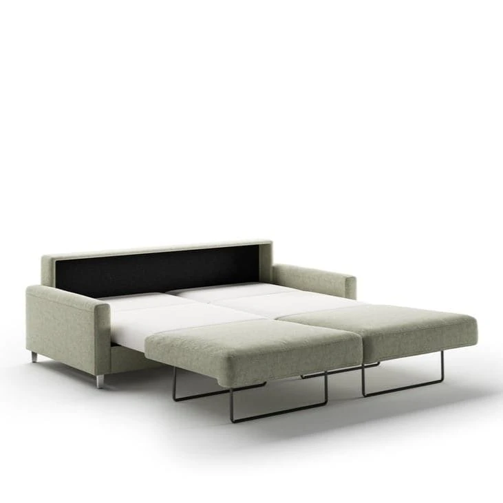 Low track arms, comfortable seat with under knee support, and its bed nests beneath its seat. Available in king to cot bed sizes to give any room more room.