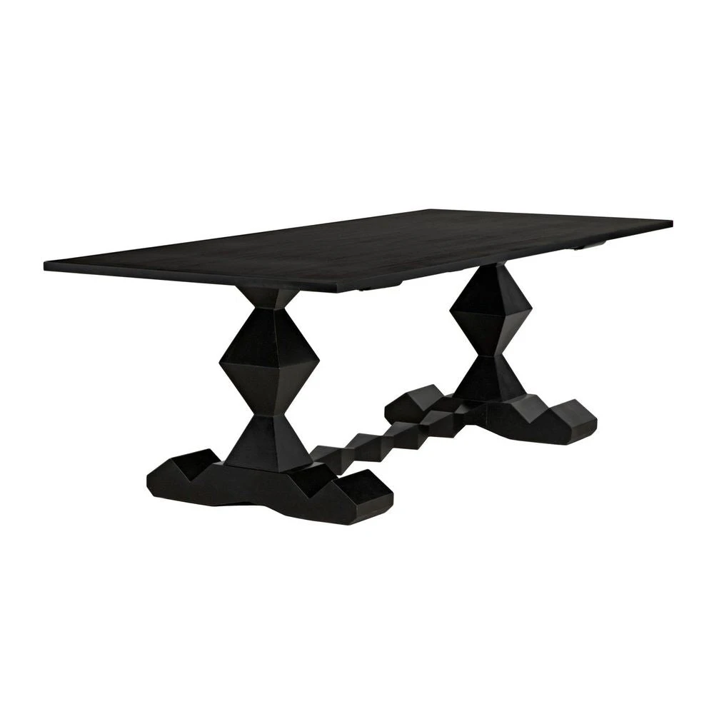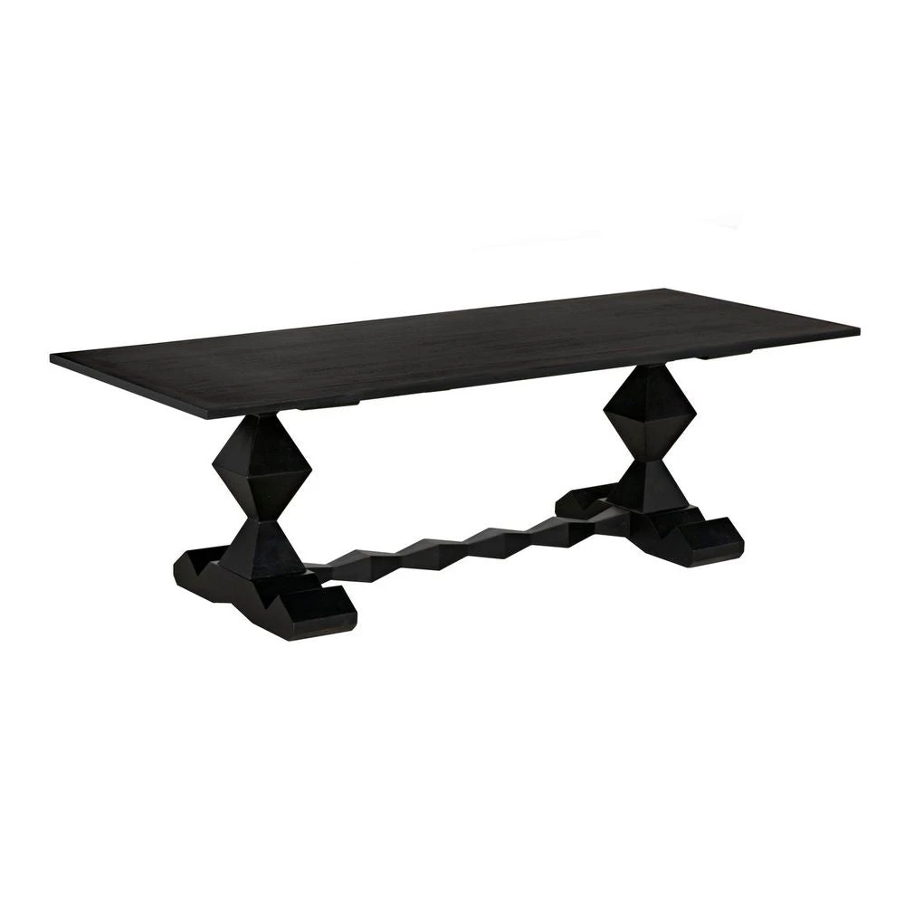 This generously sized dining table has been hand-carved of solid mahogany and enhanced with a hand-rubbed black finish. Its perfect for any dining room.