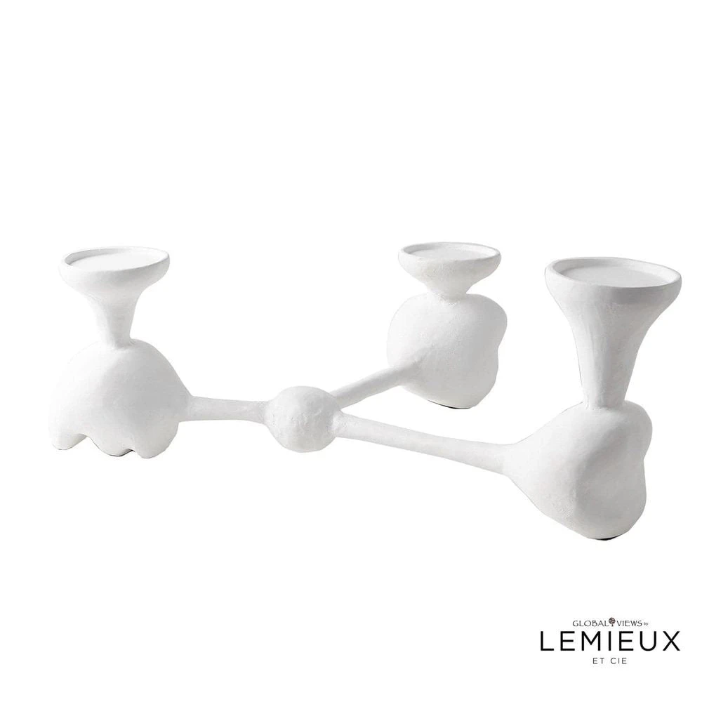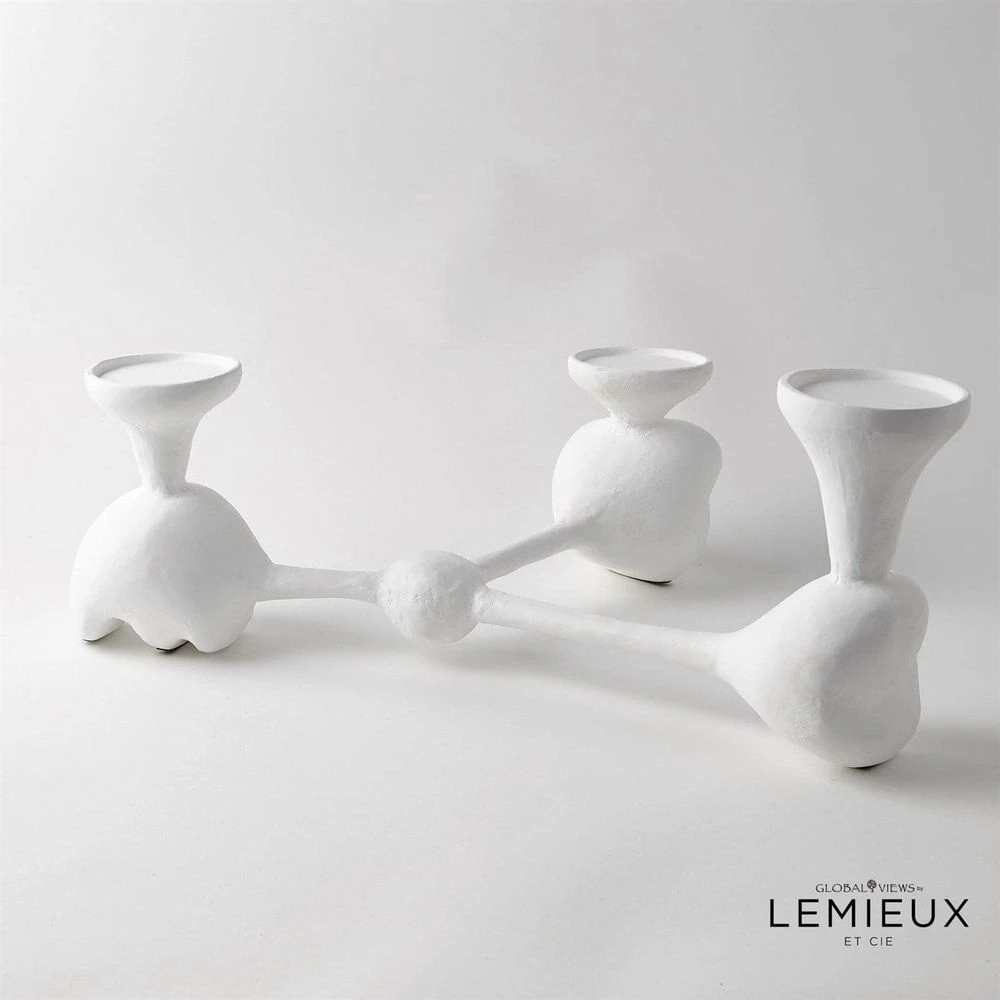 The Nunez Modern Candelabra is a uniquely sculptural piece. Created as one beautiful shape, it can be used alone or layered in pairs to create a beautiful modern organic tablescape.