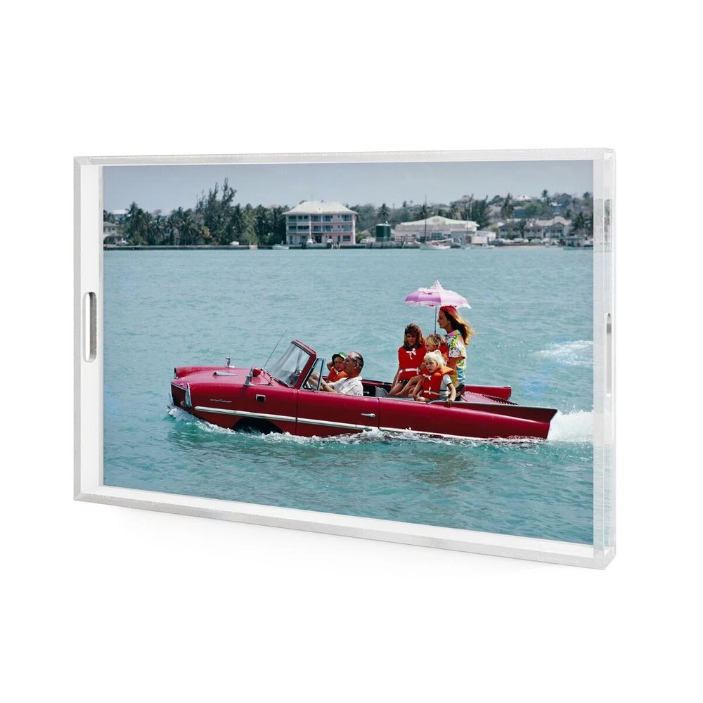 A specially selected work from the late influential photographer Slim Aarons, printed directly on an acrylic tray that’s crafted in-house by Four Hands Art Studio. Handmade in Austin, Texas, each piece includes a certificate of authenticity commemorating the partnership between Slim Aarons, Getty Images Gallery and Four Hands Art Studio. Photo courtesy of Getty Images.