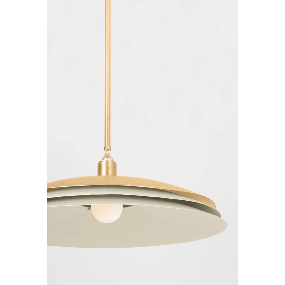 Exhibiting graceful symmetry, Oneida revives Art Deco principles with contemporary simplicity. Artfully layered tiers of Vintage Gold Leaf and sand-hued plates create a streamlined vision that guides the direction of light. As either a pendant light or sconce, the understated elegance of Oneida shines through.