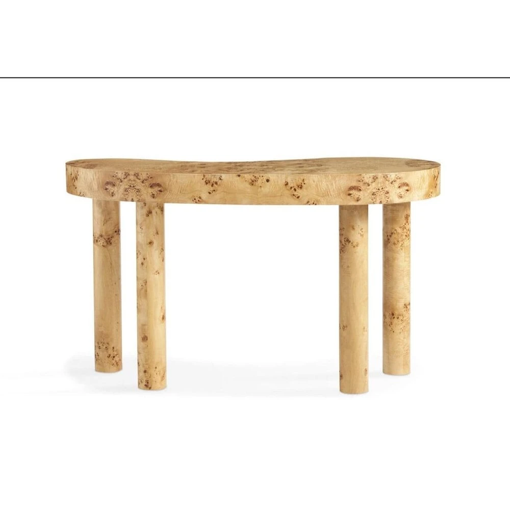 The design continuum continues to evolve in this artistic luxury piece. The iconic kidney shape first appeared as a writing desk or dressing table during the Louis XV period of 16th century France, evolved in the hands of English cabinet makers in the 18th century, and is now updated in a beautiful burl wood. Sought after for its decorative, twisted appearance, burl wood arises from overgrown knots and outgrowths found within a tree’s roots or trunk, resulting in captivating variations alternative to grain. Celebrating the age-old form with current proportions and style, we retain the organic, ergonomic shape that hugs the body, making it multifunctional and beautiful to use as a desk, console, or vanity.
