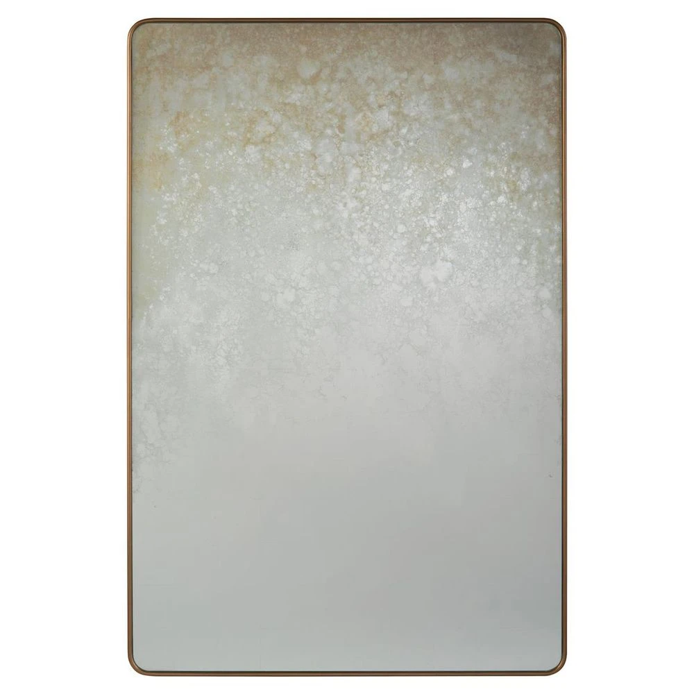 Description: A simple cock bead molding in Aztec gold surrounds a central pane of eglomise with a soft ombre pattern in pale white, cream and grey tones. Hangs in portrait or landscape.