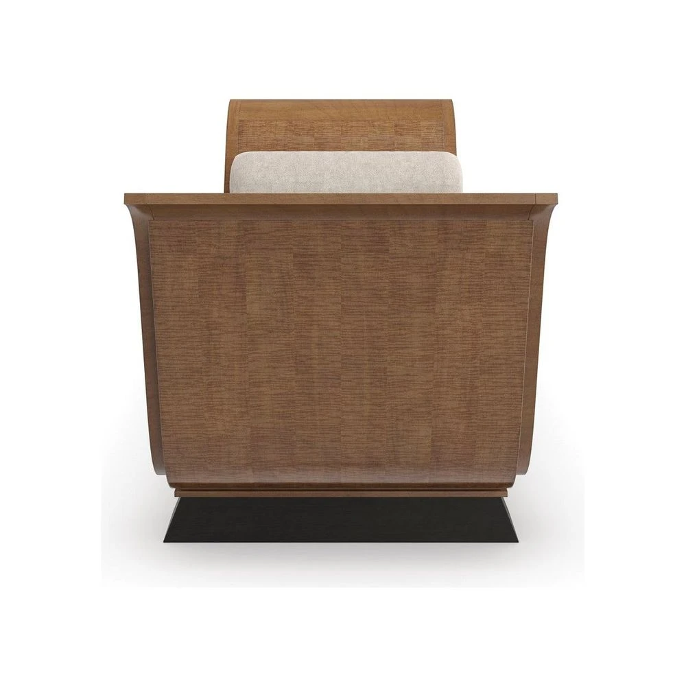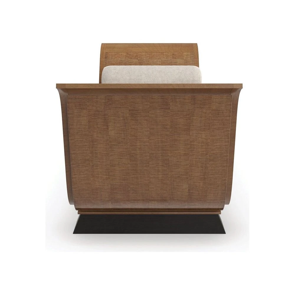 With a nod to Greek and Roman antiquity, this chaise introduces lounge-like comfort and a classic undertone. Its daybed form recalls pieces used throughout history to lounge comfortably yet respectably in the presence of guests. Dressed in a light-toned linen with matching bolster pillows, warmly contrasted by an arcing frame in Toasted Sycamore and plinth legs in a rich Charred Bark finish. Style in a seating area designed for conversations or use it to separate two designated spaces in a room.