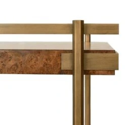 Blanche – Bath Vanity In Burl Wood W/ Ant. Brass Hardware, White Marble Top, And Porcelain Sink