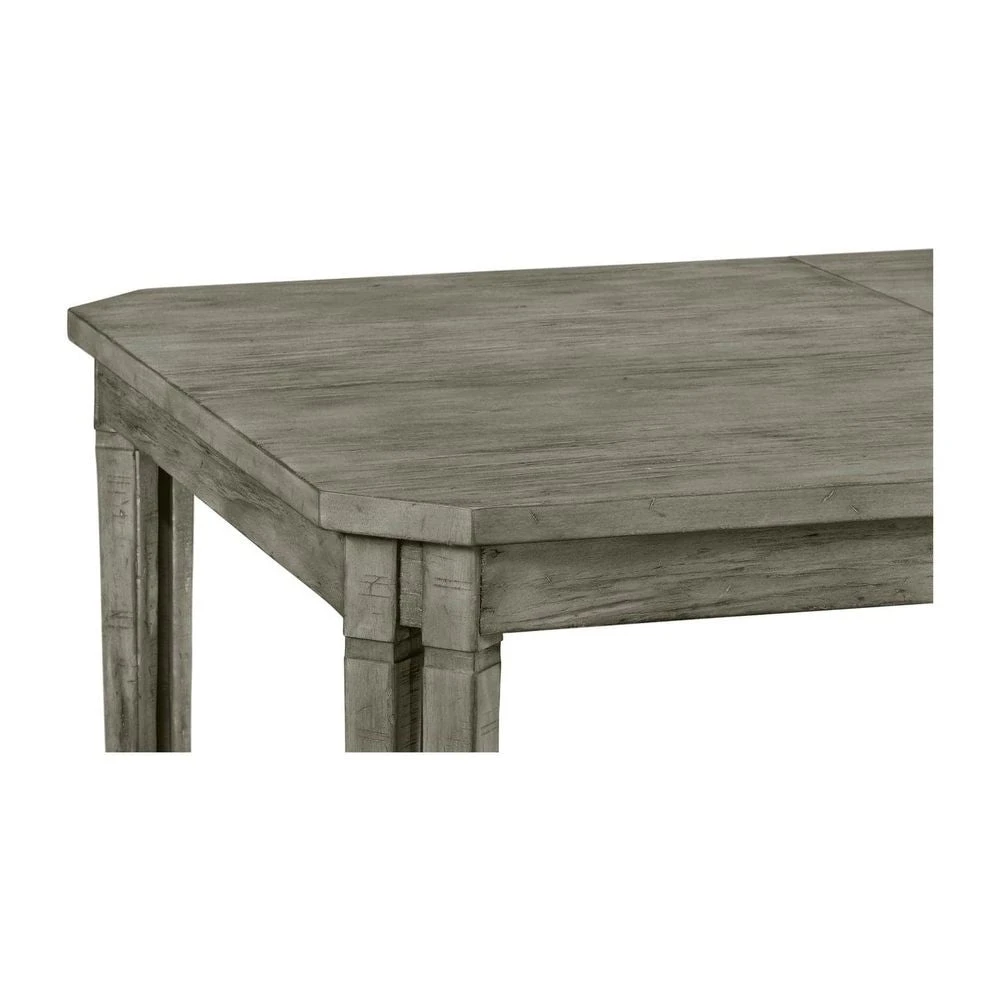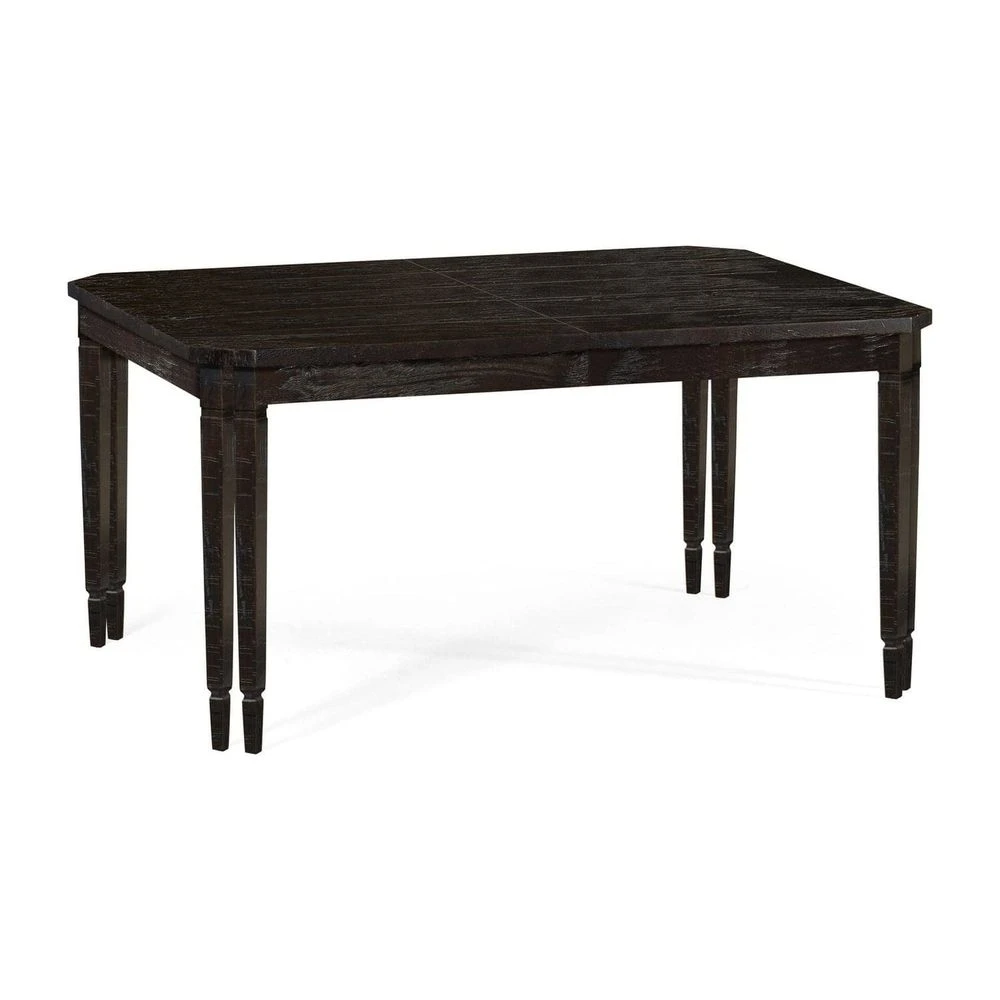 Rectangular antique dark grey, country walnut, dark ale dining table with cut corner and double legs.