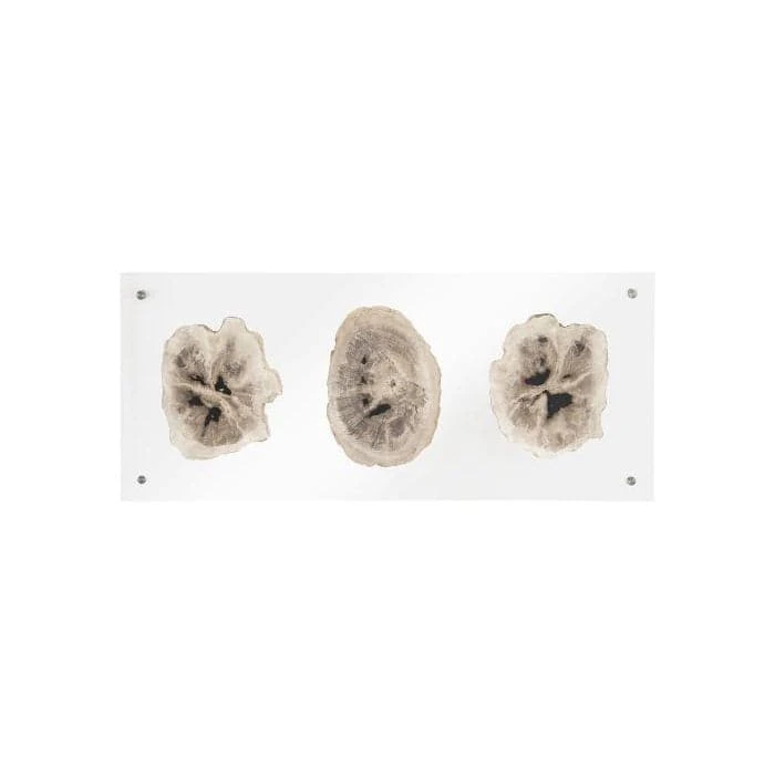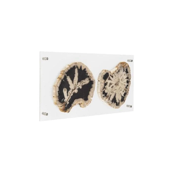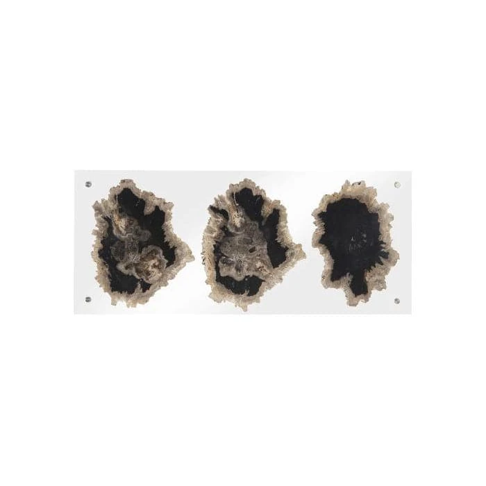 Made from petrified wood that has been cut and polished by hand in Indonesia. We’ve fastened these slices behind a piece of acrylic to create a floating wall piece. Made with love by Nature and enhanced by Phillips Collection.