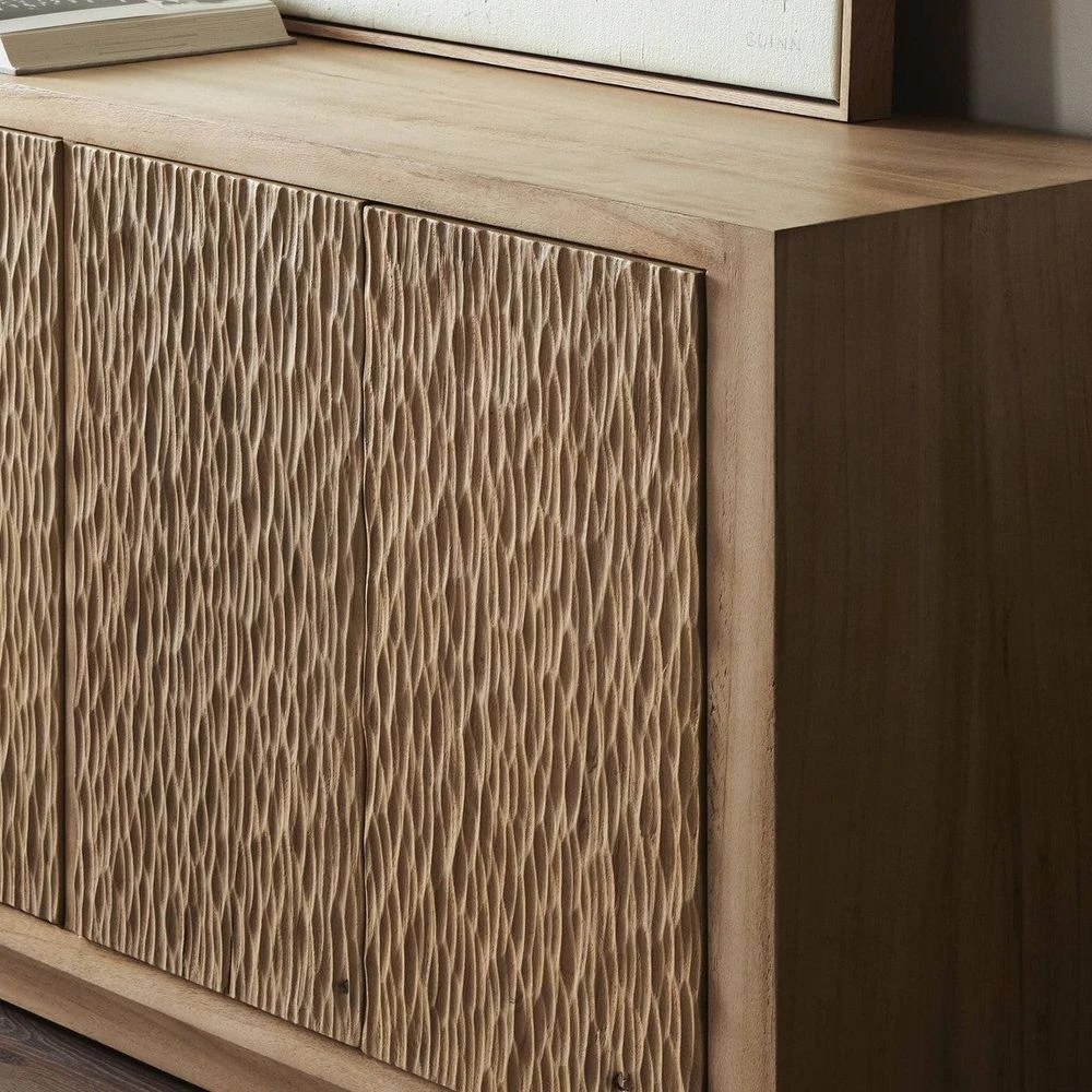 Description: Carving detail adds depth and texture to this simple, streamlined design. Made from Guanacaste with a light, natural finish, bringing rich character and an organic look to any room.