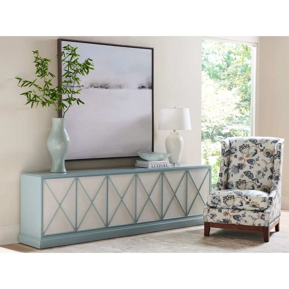 Marketing Copy: Sligh Studio Designs is a unique assortment of consoles and desks comprised of an exceptional array of design and custom finishes. The concept behind the TV consoles was to create a collection through which we could design distinctive pieces that highlight furniture as the room’s statement piece rather than the electronic equipment. The new home office is a stylish extension of one’s interior decor and a room that directly reflects the personality of its occupant. The desks blend the form and fucntion for which Sligh is known, with an inspiring dose of designer style and color.