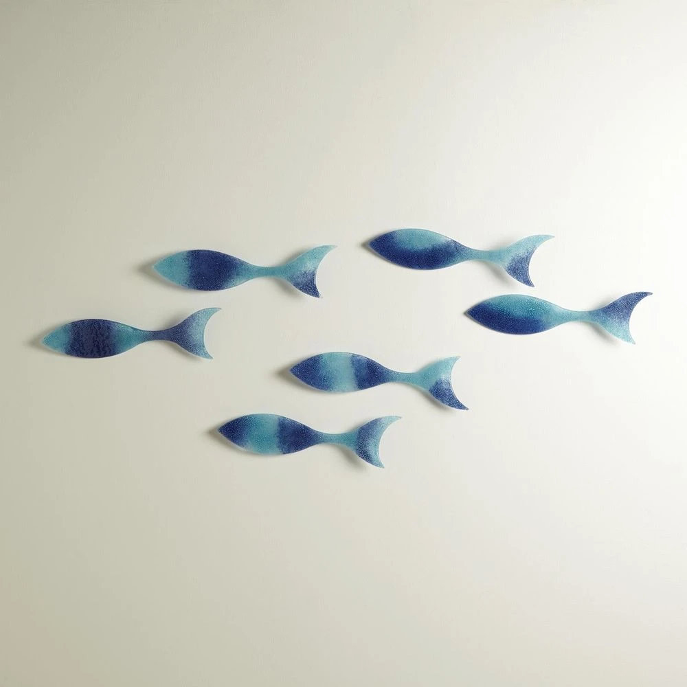 Description: Hand crafted of glass with a blue and white iridescent finish. This wall decor is a perfect addition to any room.