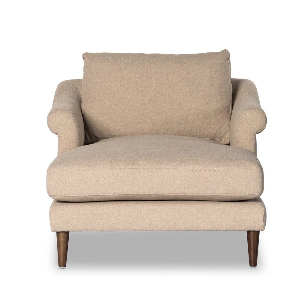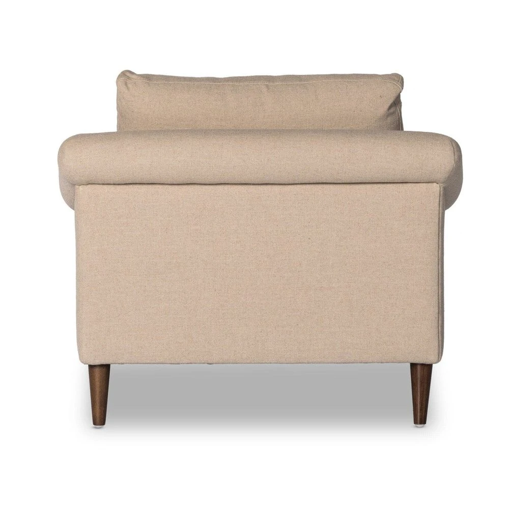Description: Clean lines and a classic roll arm detail craft a high chaise lounge with loose feather-blend seat and back cushions, accented by tapered legs. Casual, timeless performance linen-blend upholstery adds modern comfort. Performance fabrics are specially created to withstand spills, stains, high traffic and wear, ensuring long-term comfort and unmatched durability. Slipcover can be removed for machine washing; steaming recommended.