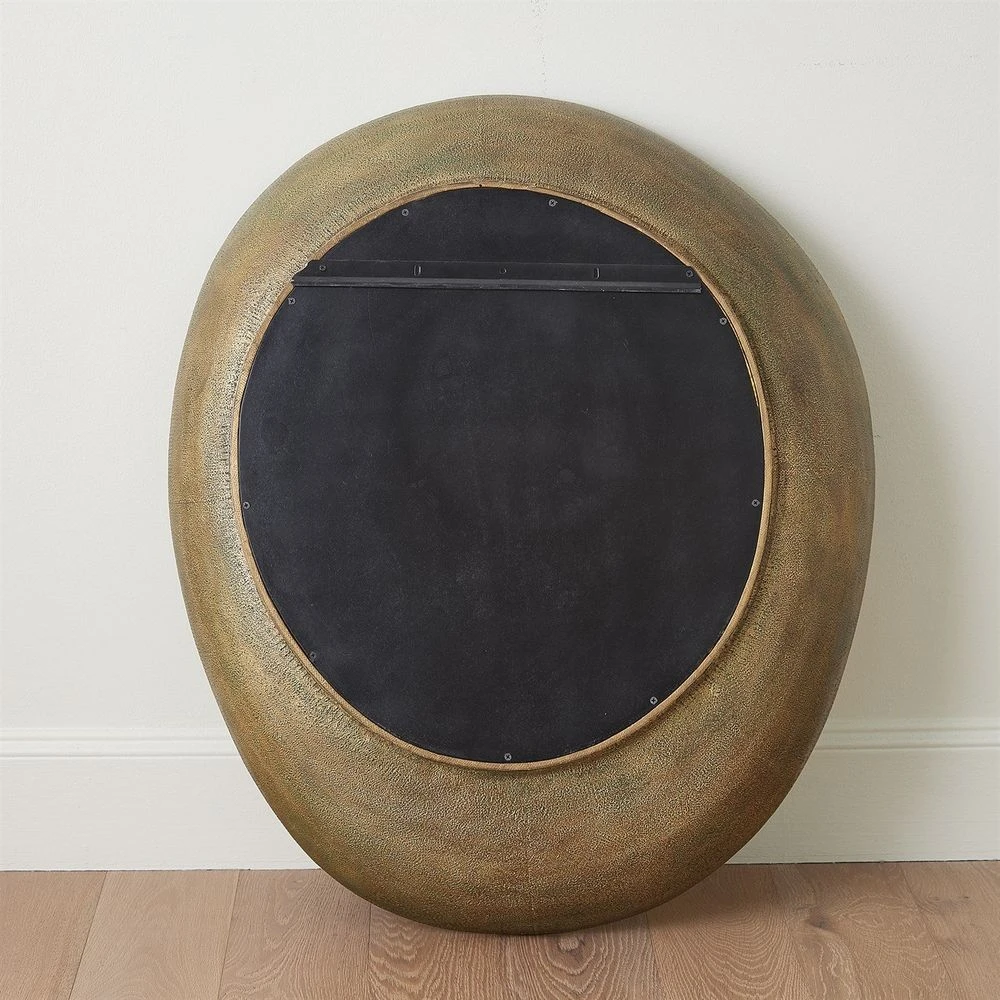 Description: The Saturn Mirrors showcase an organic shape, featuring hand-applied textured antique brass cladding with a rich antique gold finish. Their unique design adds a touch of sophistication and warmth to any decor.