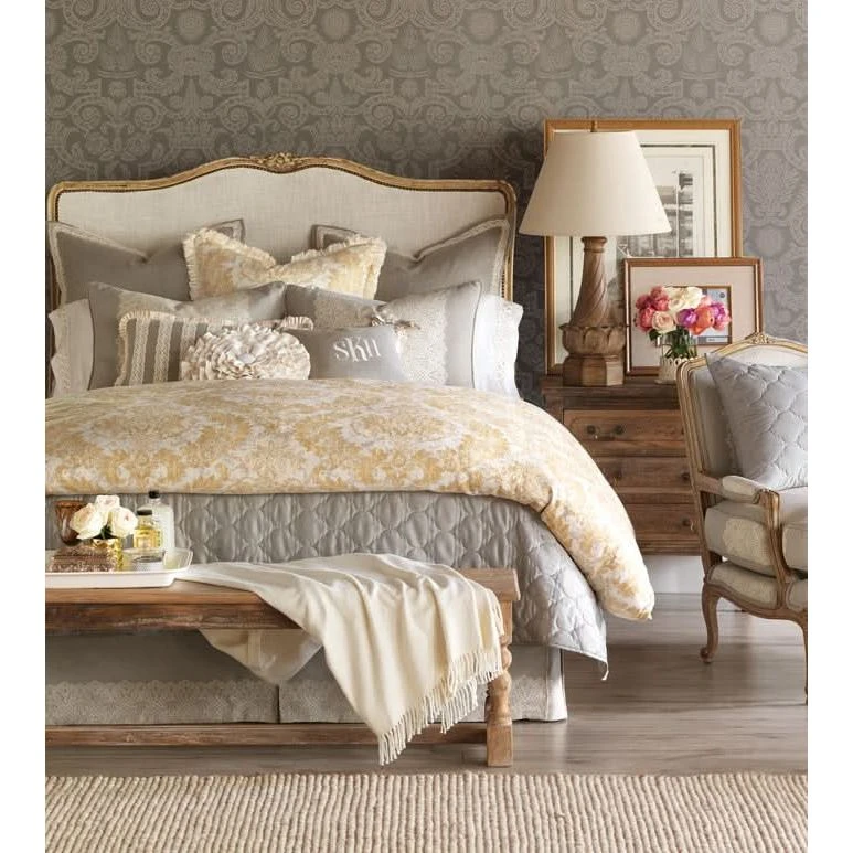 Treat your home to Shaggy’s casual elegance. In light tones and soft linens, this cool, feminine bed will brighten any room. Its frilly, fun, and sophisticated decorative pillows each bring their own touch of charm to the collection.