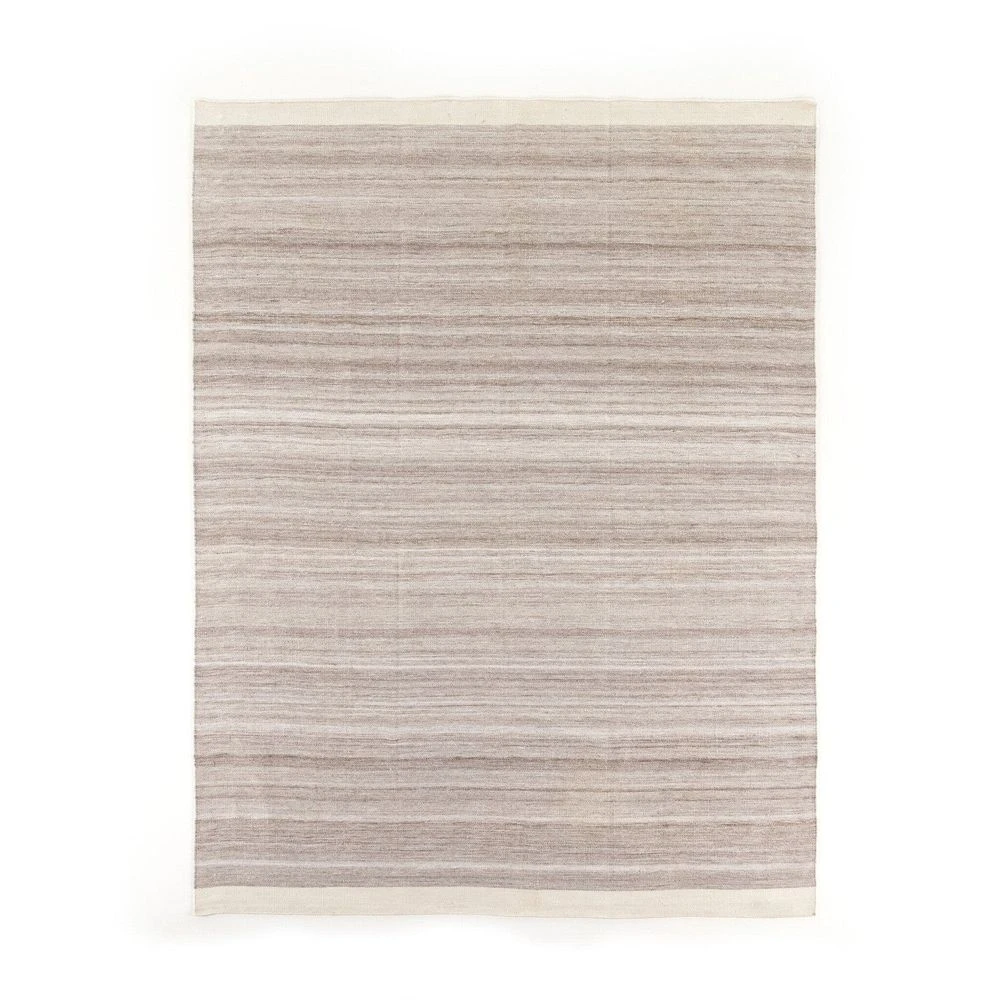 - Description: Heathered grey and cream rug with a soft stripe pattern throughout. Accented by a small fringe detail on the edges. Cover or store indoors during inclement weather and when not in use.