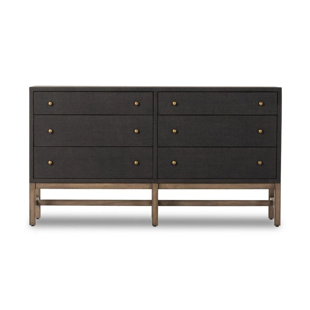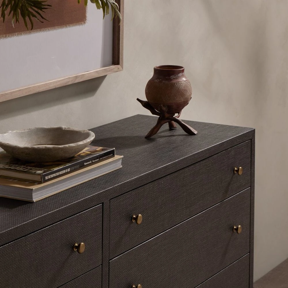 - Finish: Russet Mahogany, Black Raffia, Light Antique Brass