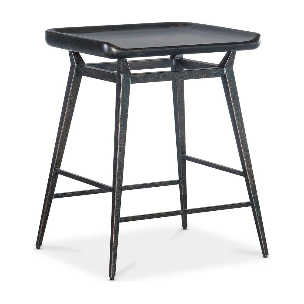 Description: Industrial, chic and Zen, the two-tone Solace Stool combines a light wood seat with a black metal base, stretchers and footrest. The scooped seat is crafted of wood finished in the Black Sand finish, transparent by design to reveal the unique grain pattern of the wood veneer.