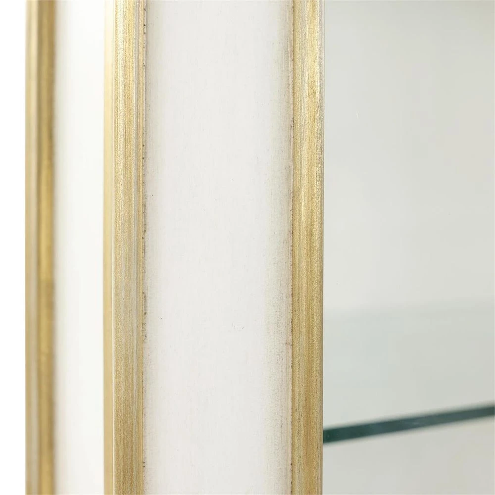 The Sonoma Cabinet Is a dignified piece that enhances any décor through opulent accents and intricate detailing. Crafted from a blend of beech and celtis woods, the piece is adorned in an Antique Beluga finish with detailing in Distressed Gold with matching steel handles adorning the cabinet doors and two bottom drawers. Sophisticated molding spans the entire frame, contributing depth and dimension to any interior space. The cabinet doors are affixed with tempered glass, allowing full view of the three adjustable glass shelves in the interior. The piece features a dimmable LED, with an inset switch centered below the bottom rail. Turn it on and off by moving your foot, and adjust the brightness by holding your foot in place.
