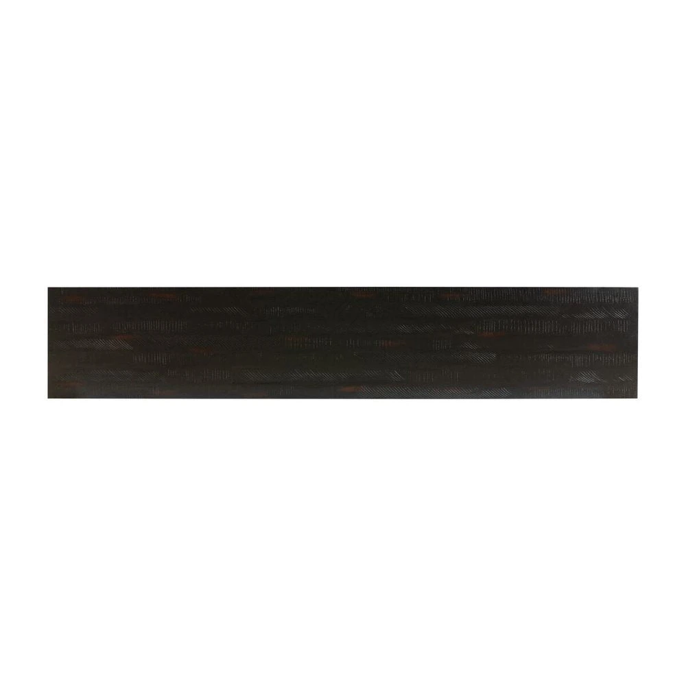 Simple sophistication with a modern edge. Long, clean lines to lighten the natural depth of a burnished black finish. Brass-finished hardware adds a sleek touch to nine spacious drawers.