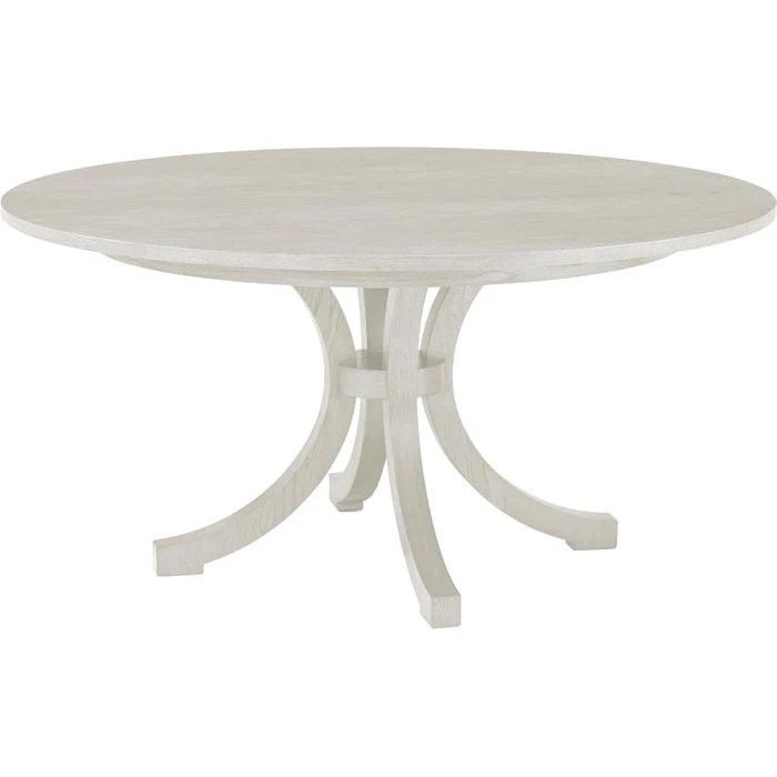 Influenced by the historical forms of antiquity, the early 1800s can be characterized by its refined take on classical forms. In the Surrey round dining table, curved forms take a distinct X shape in this elegant nod to 19th century design. Above, a remarkable oak wood surface. Beautifully composed from a rich oak wood. Finished in Brownstone.