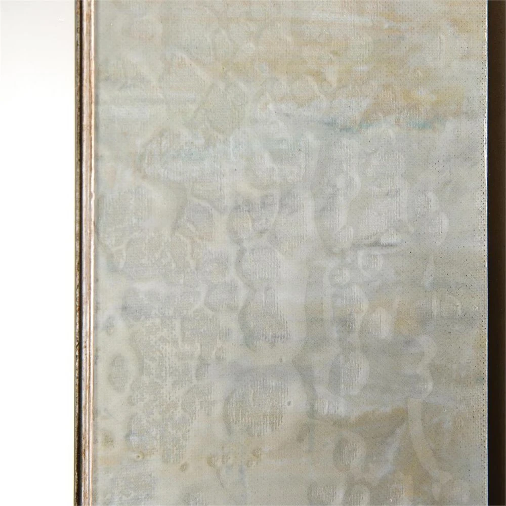This stunning beveled mirror features “As The Water Flows” by artist Susan Gunter on canvas across the rectangular frame. A vitreous finish overlaying the canvas simulates the look of flowing water, completing the look of this dynamic statement piece.
