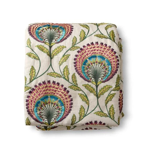 - Throw reverses to solid linen/cotton. Lightly padded with poly fiberfill.
