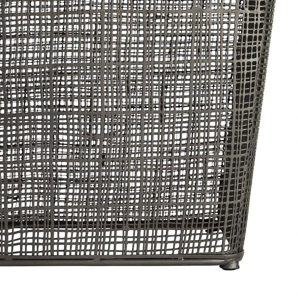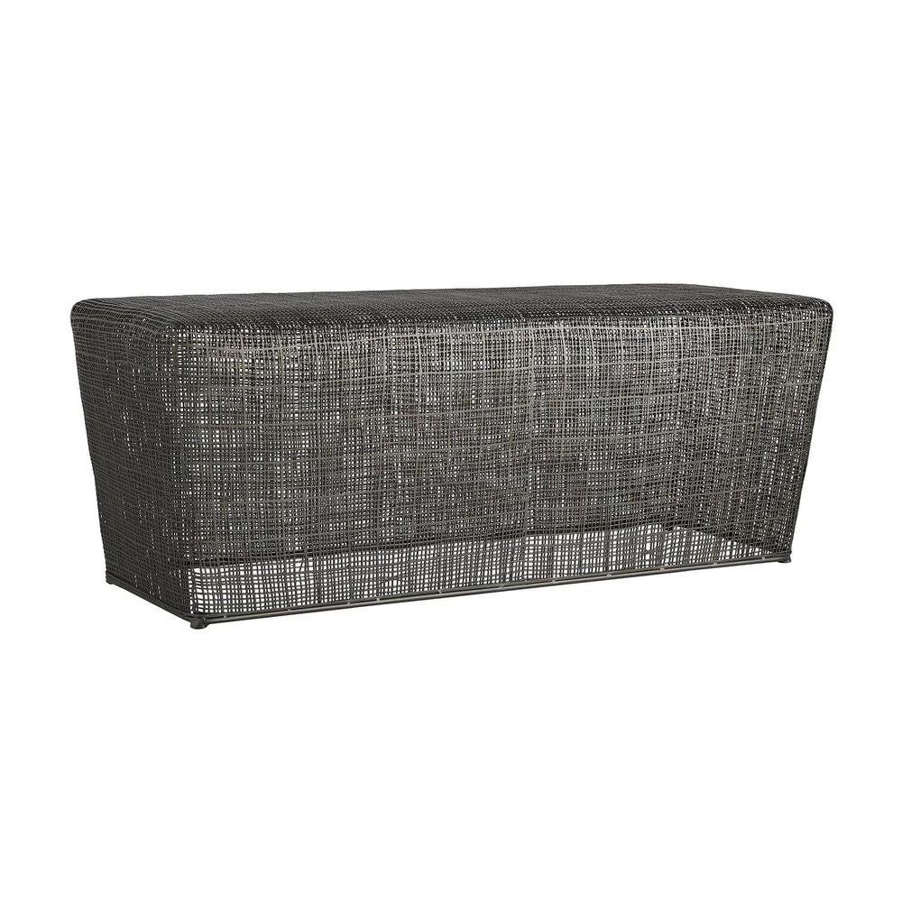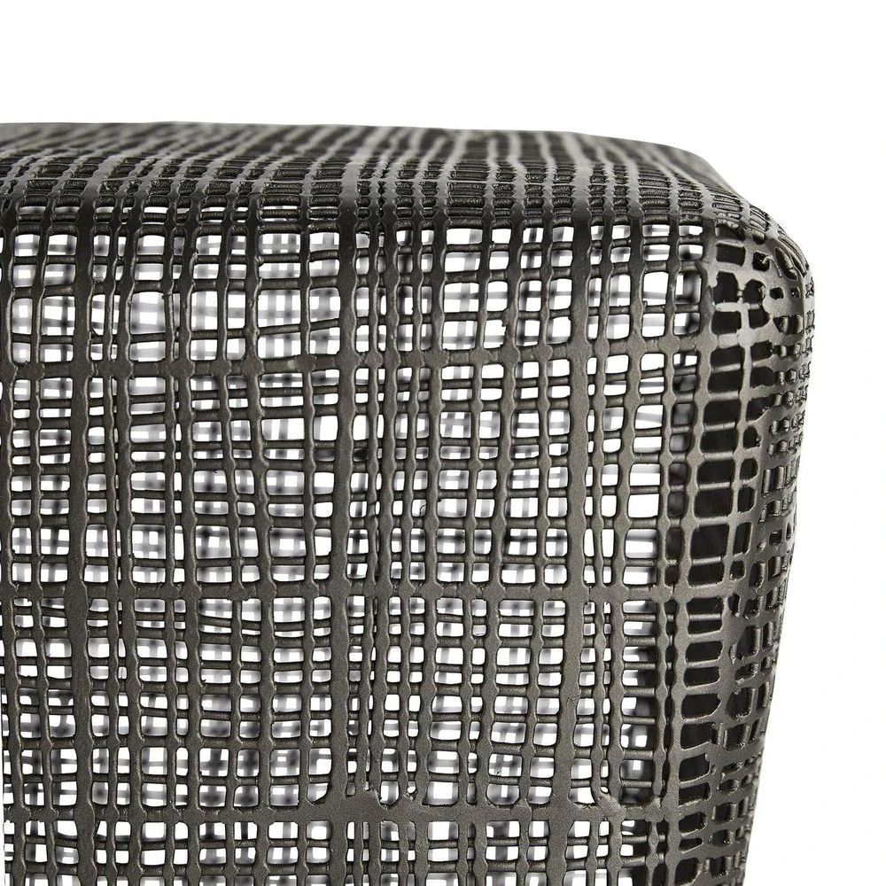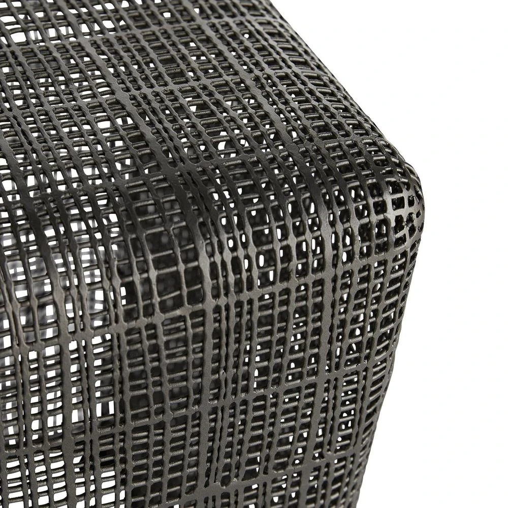Intricate details draw the eye in on this arresting design that can work as a bench or cocktail table. It’s hand-crafted in a cold-forged process, which is how the woven iron structure gets its signature flattened texture. Metalsmiths weld raw, galvanized iron wire and hammer each section they make, then finishing the entire form with a dark shade of graphite. It’s simple design and rounded edges help accentuate the craftsmanship in its rich textures.