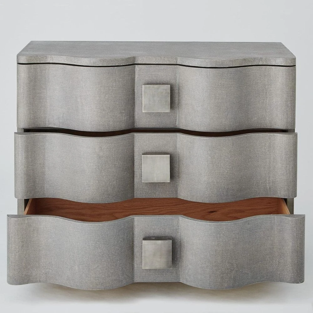Wrapped by hand in fine Belgian linen then given a multi-layered grey-toned glaze, this collection features oak-lined drawers and custom hardware with antique nickel finish. A technique that fell out of favor for many years, fabric-wrapping furniture is an exacting art we have revived with the help of one of the industry’s leading manufacturers of fine accent furniture.