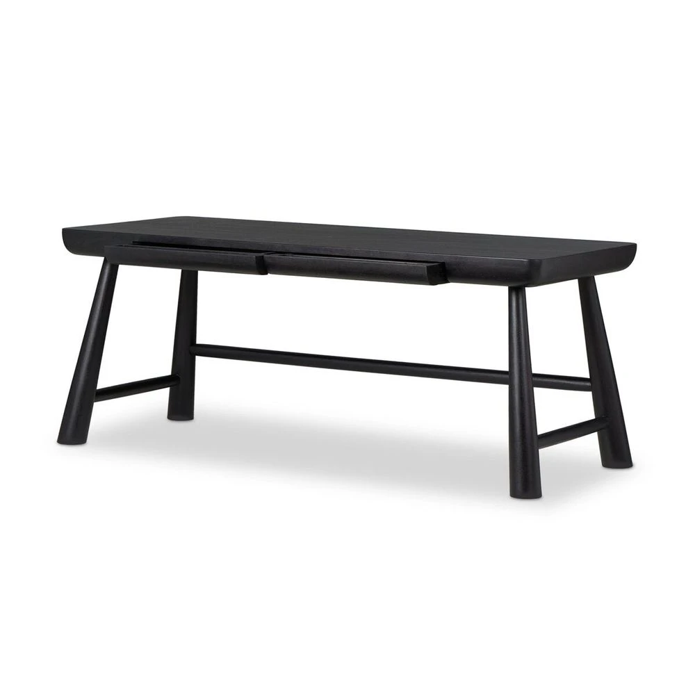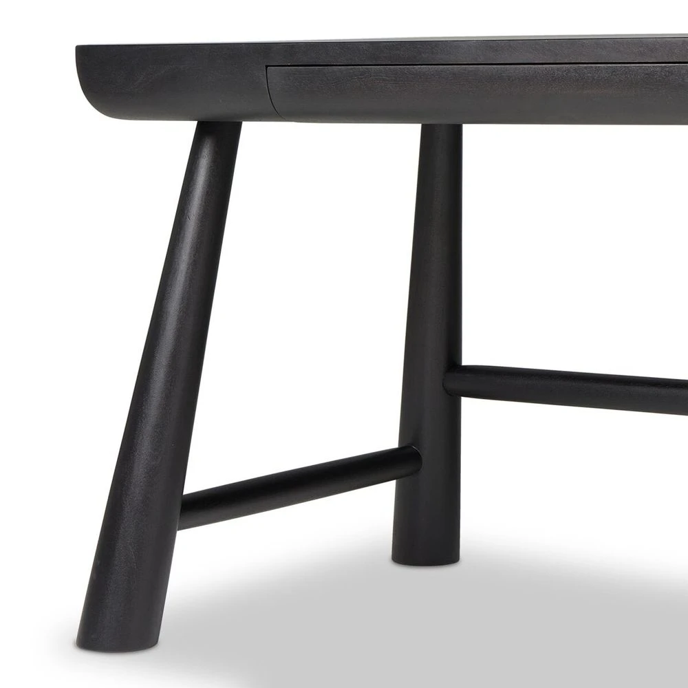 Wabi Sabi-inspired and designed with a clean, bold shape. This rustic desk features a modernized shape crafted from worn acacia wood. Designed with cylindrical legs that are both angled and tapered for added movement. Built-in, hidden pencil drawers keep the focus on the natural graining and grooves of the wood used to craft this piece.